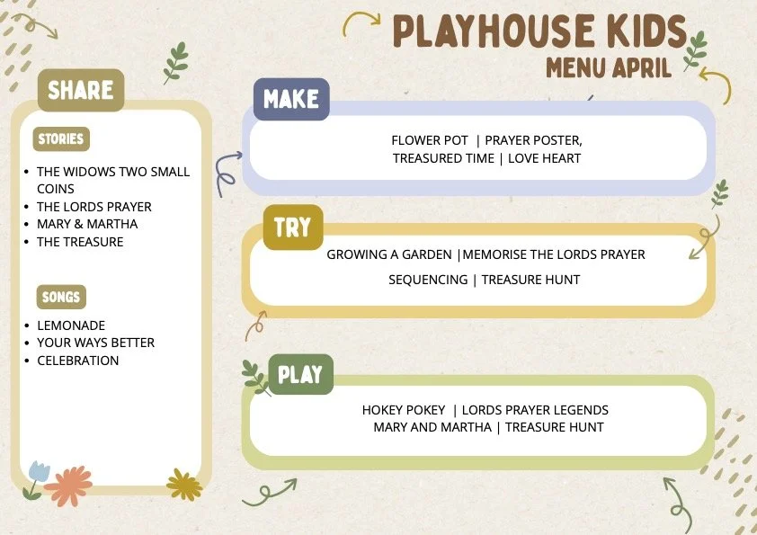 On this page the content is in the order of our Kids Connect Playhouse Time. Our hosts use the images as prompts for what’s next.