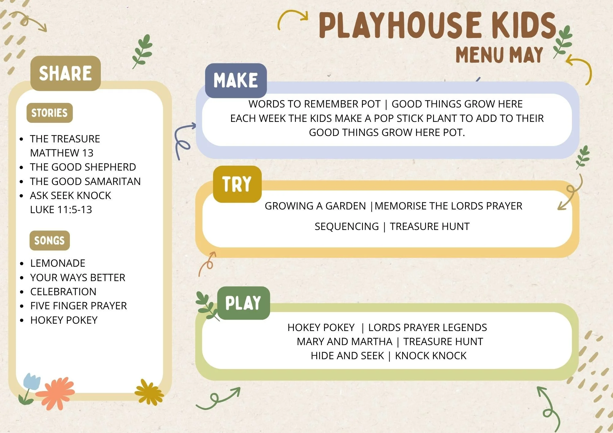 On this page the content is in the order of our Kids Connect Playhouse Time. Our hosts use the images as prompts for what’s next.