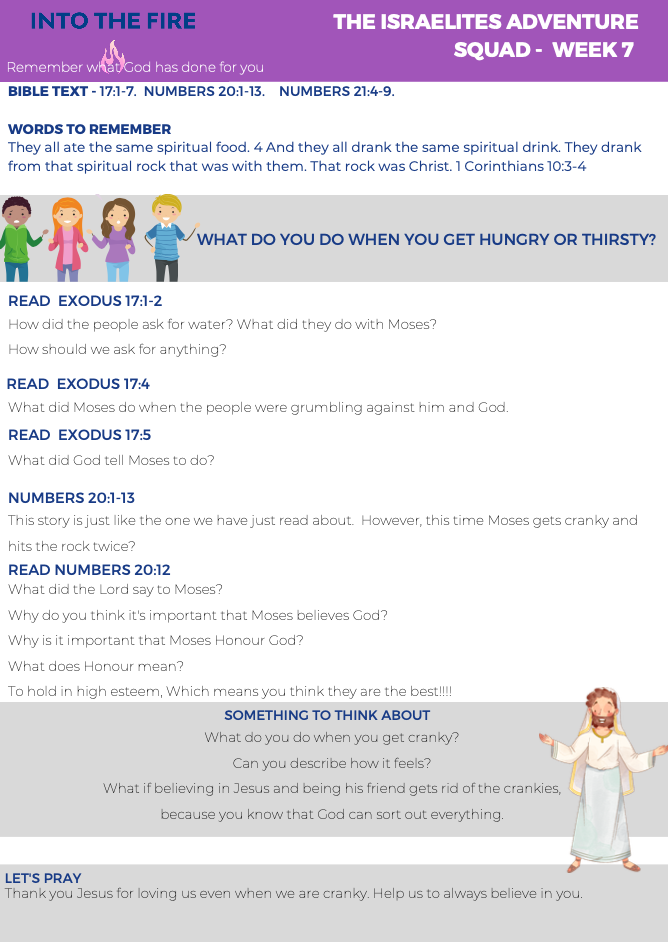 THIS WEEK we explore three stories where the Israelites forgot how well God had cared for them and they complained constantly to Moses & Aaron. What do we do when we aren't getting what we want? See how God uses one of these stories to show what Jesus did for us.