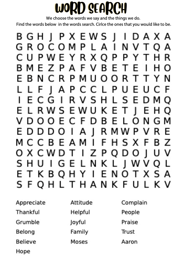 The Israelites complained a lot while they were in the desert… They chose to focus on the things going wrong instead of looking at the things going well!
